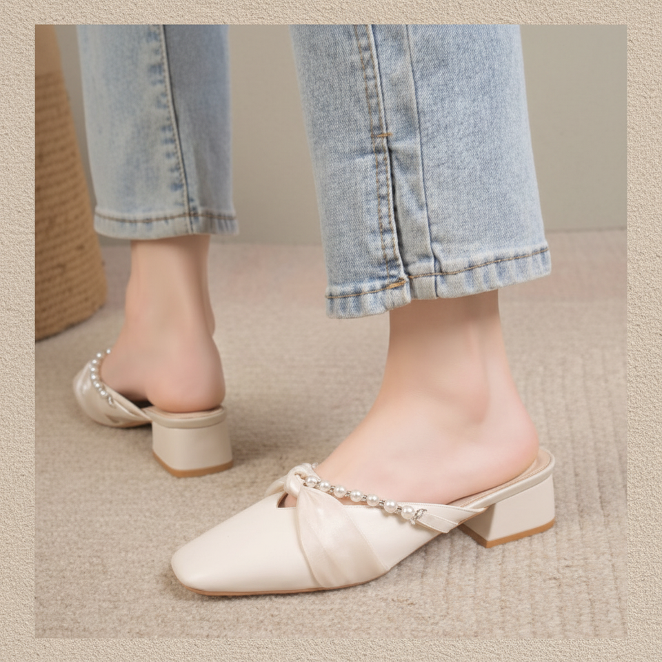 2025 Summer New Women's Bag Head Half Slipper Sandals Fairy Style High Heels with Skirt Cut Pedestal Flats