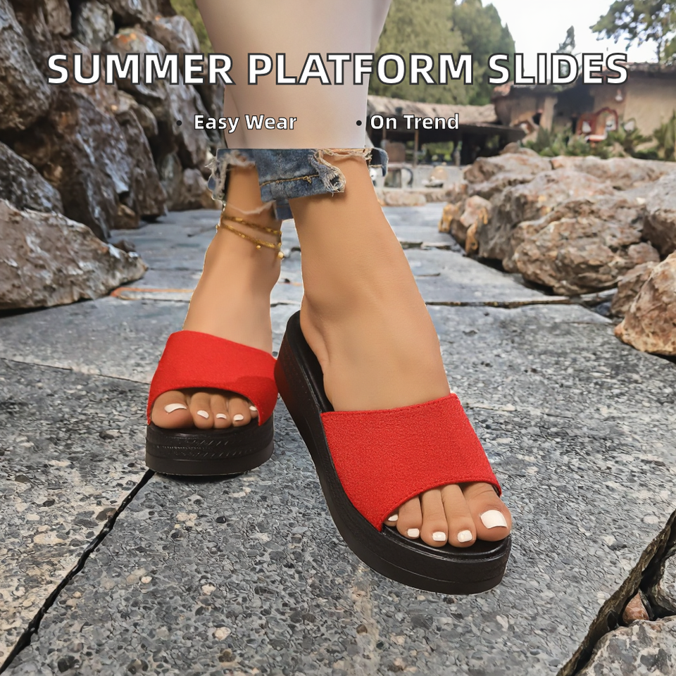 2025 Summer Platform Outdoor Slip-On Short Pu Cool Slippers for Women Oversized with Slope Heels and Sponge Cake Solid Color