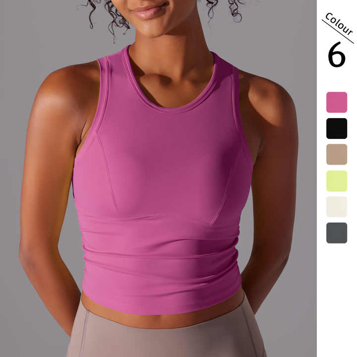 2025 Summer Women's Custom Eco-Friendly Gym Fitness Shirts Breathable Lightweight Seamless Crew Neck Padded Tank Top Front