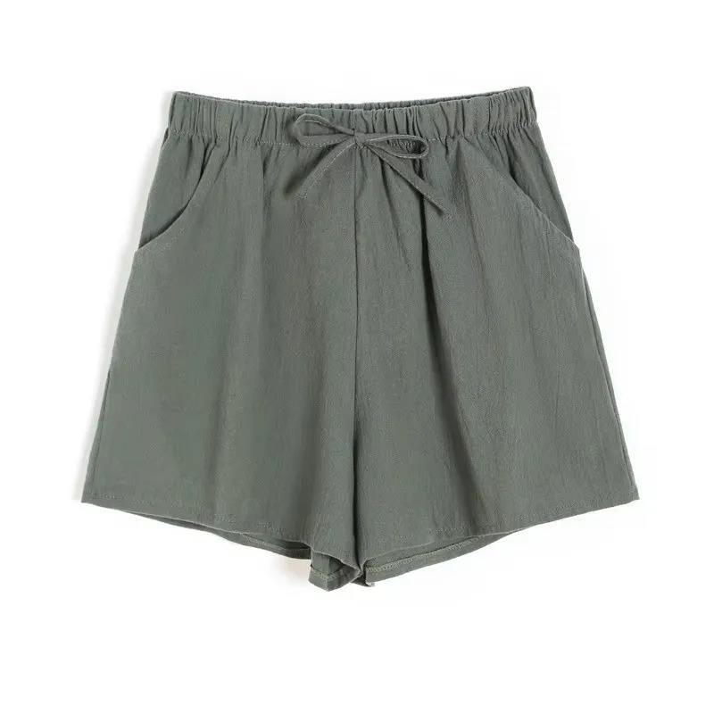 2025 Summer Women's Linen Cotton Shorts Casual Korean Style Elastic High Waist Harem Pants with Wide Leg Sexy & Loose Fit