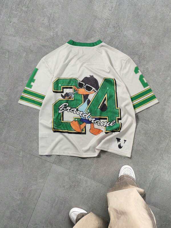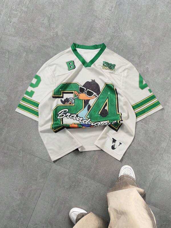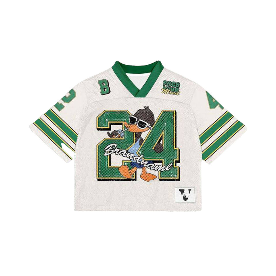 2025 Supplier Men's Green American Football Jersey Printed Cartoon Duck Graphic Short Mesh V-Neck Breathable Anti-UV Top Adults