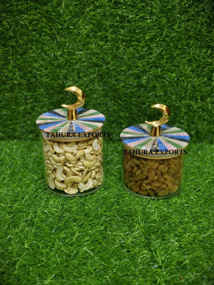 2026 Customized New Handmade Resin Jar Mother Pearl Transparent Tabletop Container Cover for Fruit Storage Table Decoration