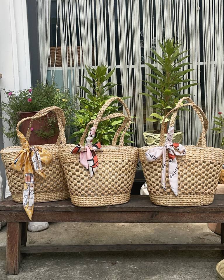 2025 Timeless Collection Eco Friendly Handcrafted Natural Water Hyacinth Women's Handbags Elegant Handles Open Closure Two
