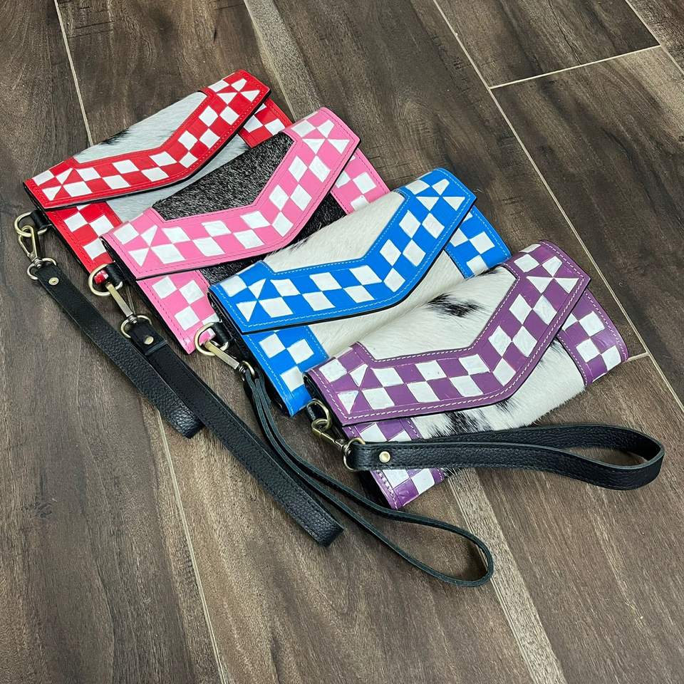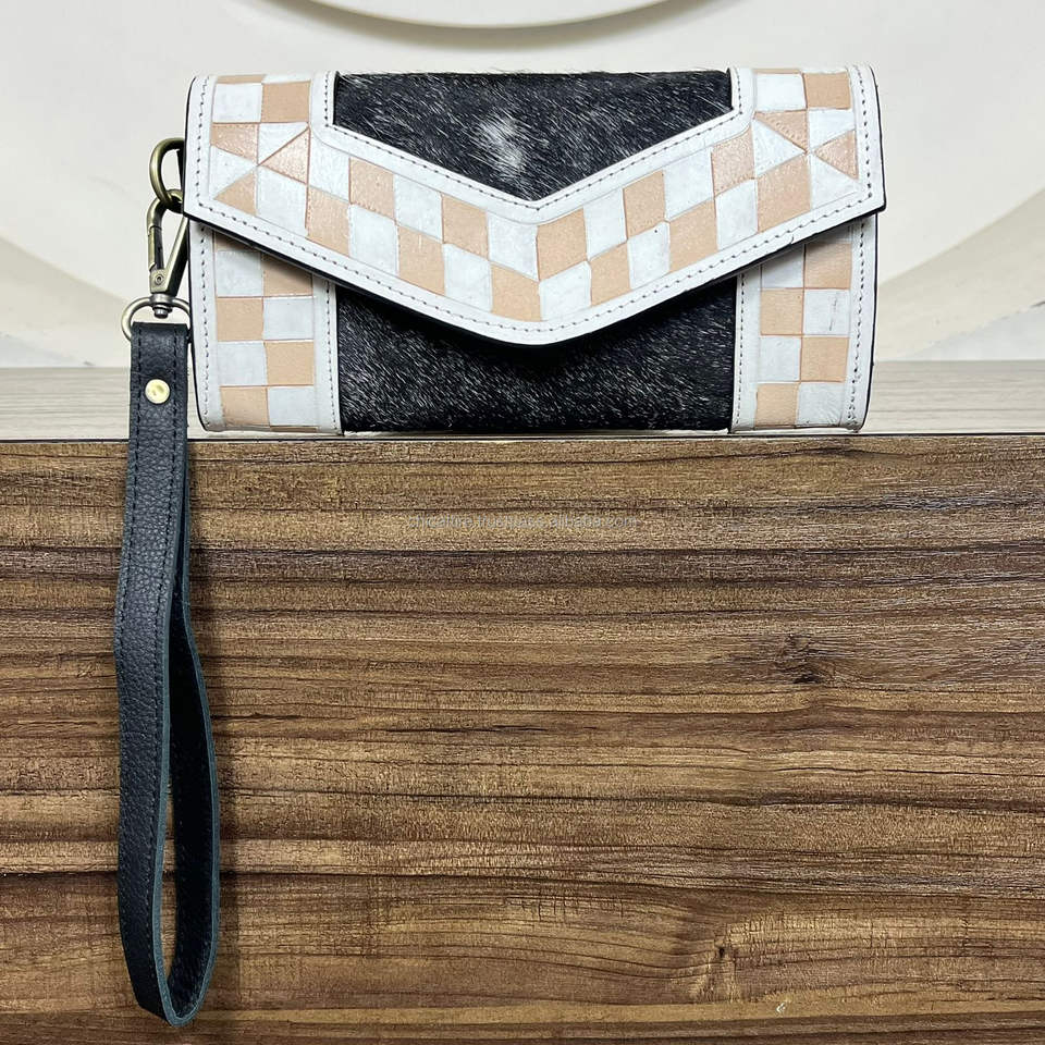 2025 Top Listed Supplier's RFID Standard Quality Women's Wallet Hand Tooled Checkered Leather Clutch Handmade Long Travel Purse