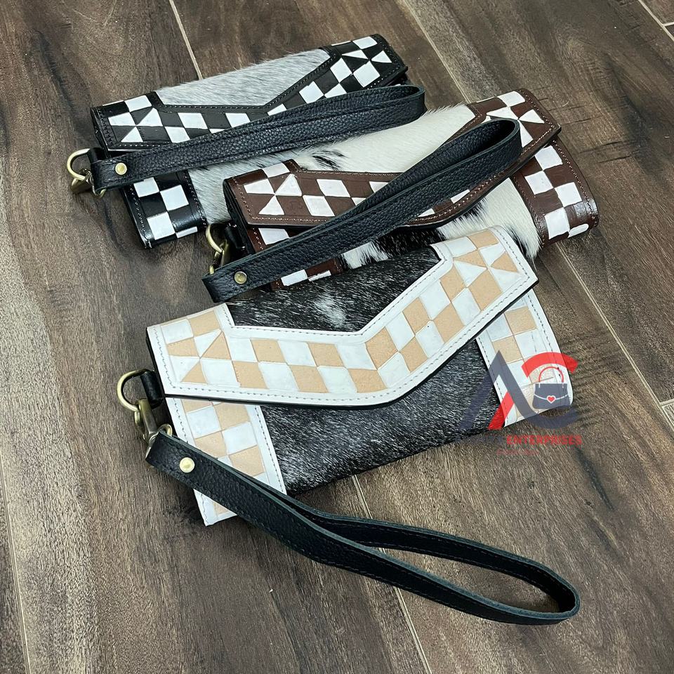 Product name:Hand Tooled Checkered Leather wristlet Wallet