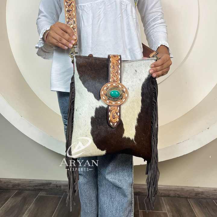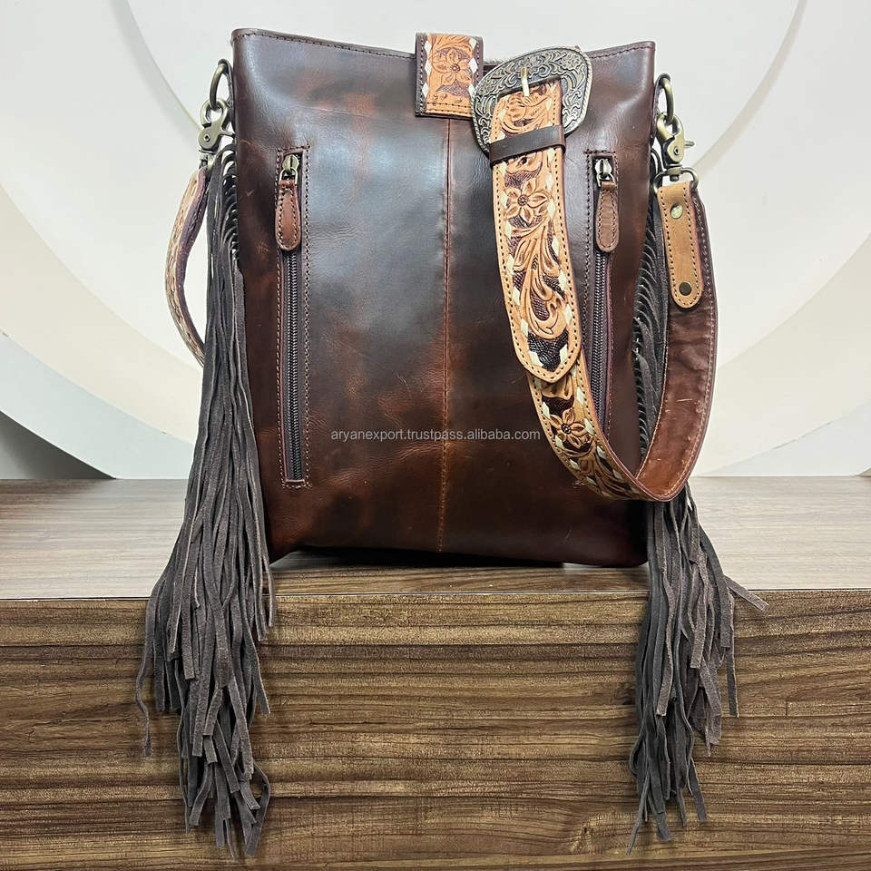 Product name:Tooled Leather Fringe Handbag