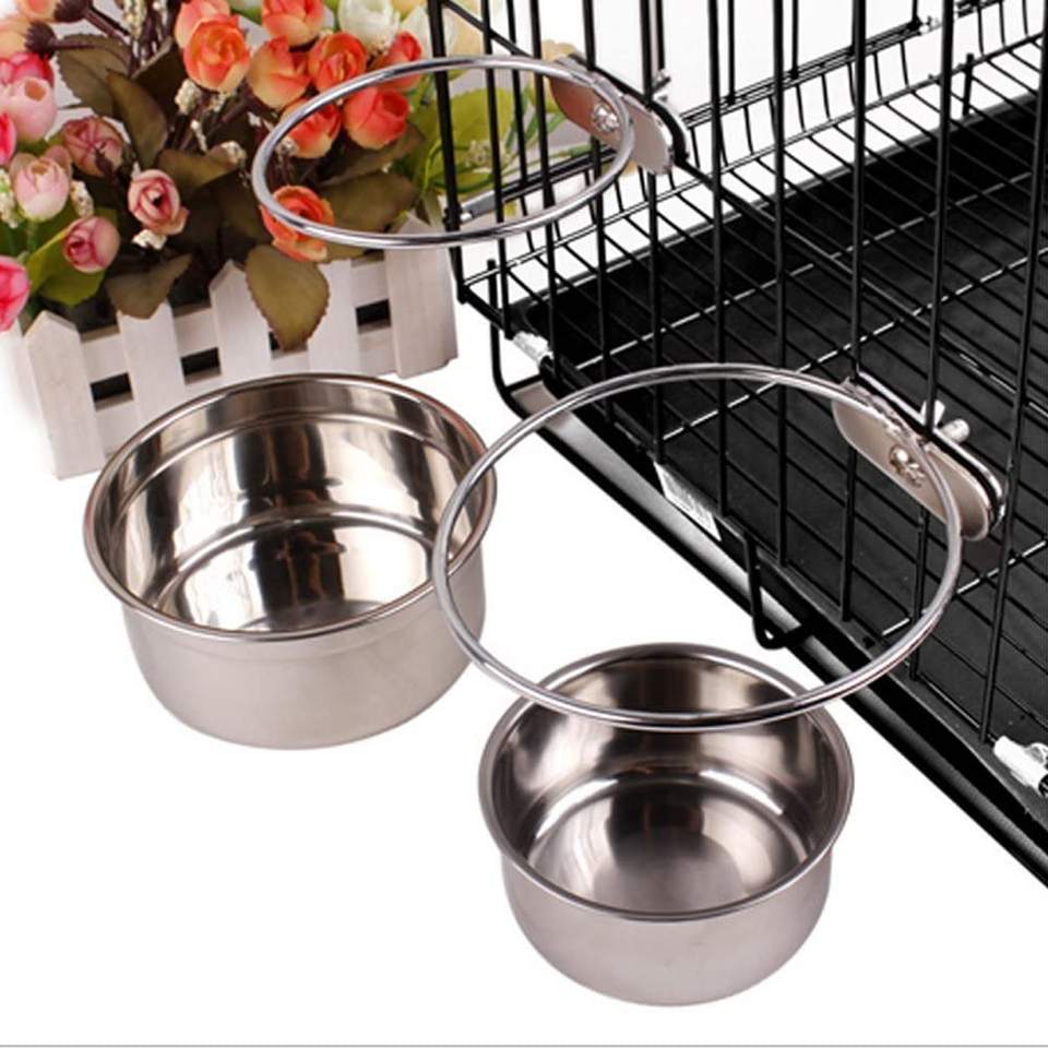 2025 Top Selling Portable Stainless Steel Feeder Bowl Parrot Feeding and Watering Hanging Cage Food Bowls with Clamp Holder