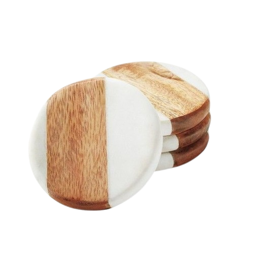 2025 Top Selling Set of 4 Wood & Stone Table Decor Coasters Latest Design Kitchenware Coffee Mats & Pads for Wholesale Price
