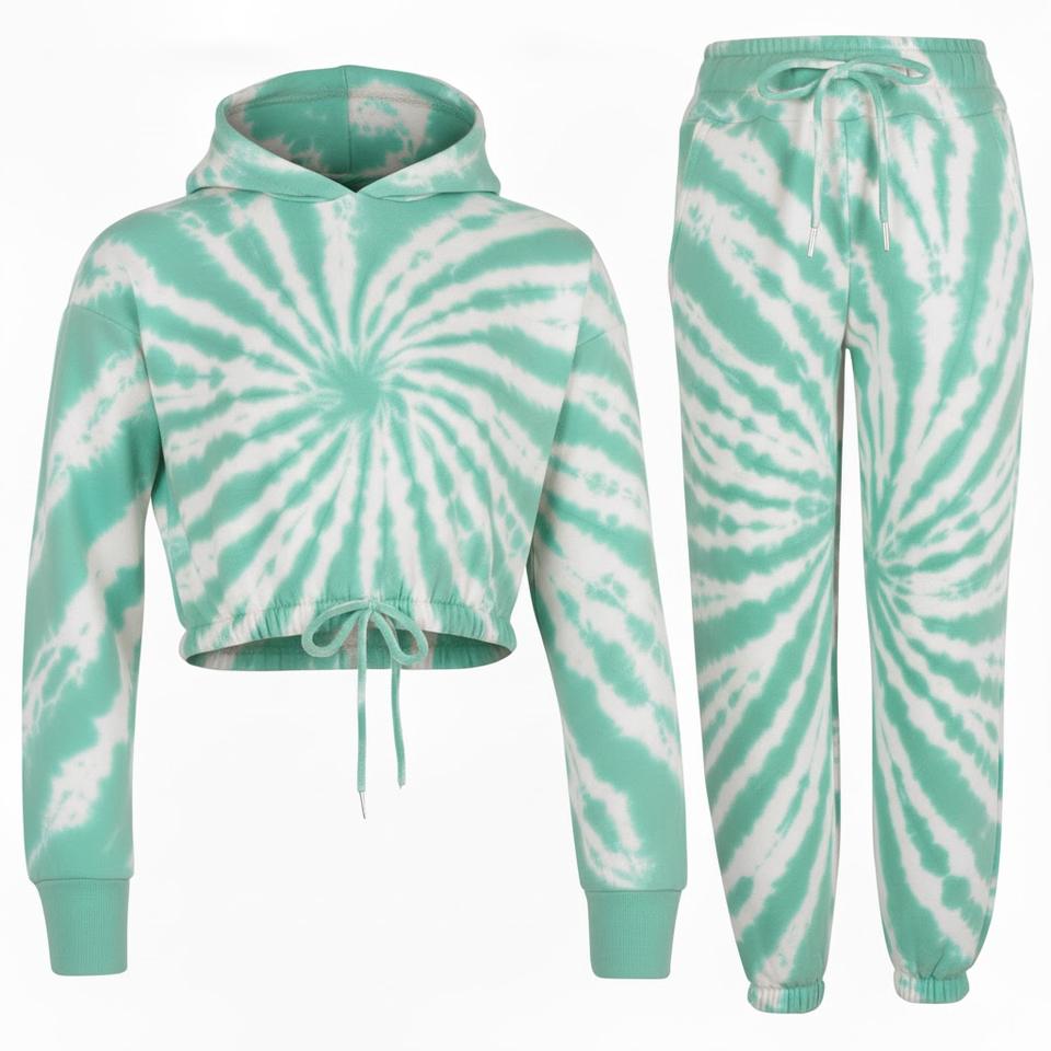 2025 Top Selling Women Pink and White Sublimated Jogger Set 100% Polyester Tracksuit For Women Crop Top Hoodie with Fleece Pant