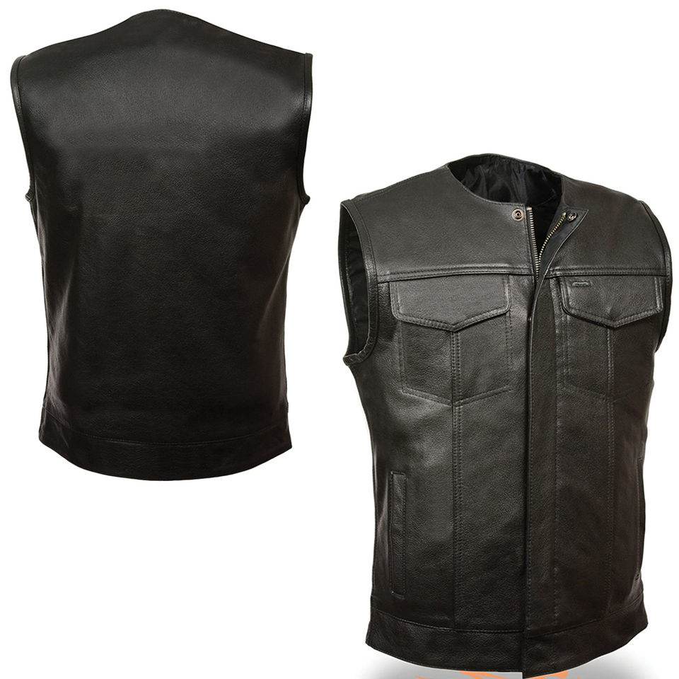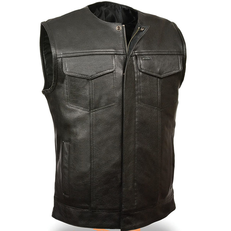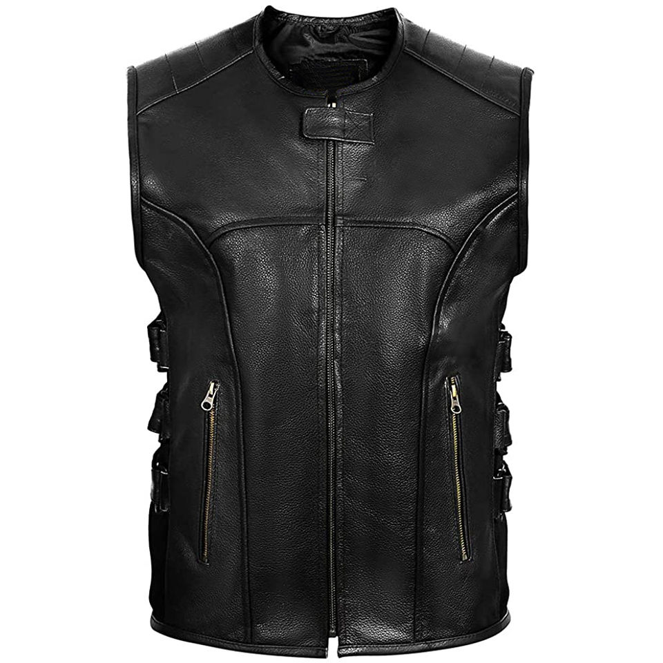 2025 Top Trending Men's High Quality Grey Leather Vest Plus-Size Sleeveless Breathable Windproof Polyester Lining Winter Heated