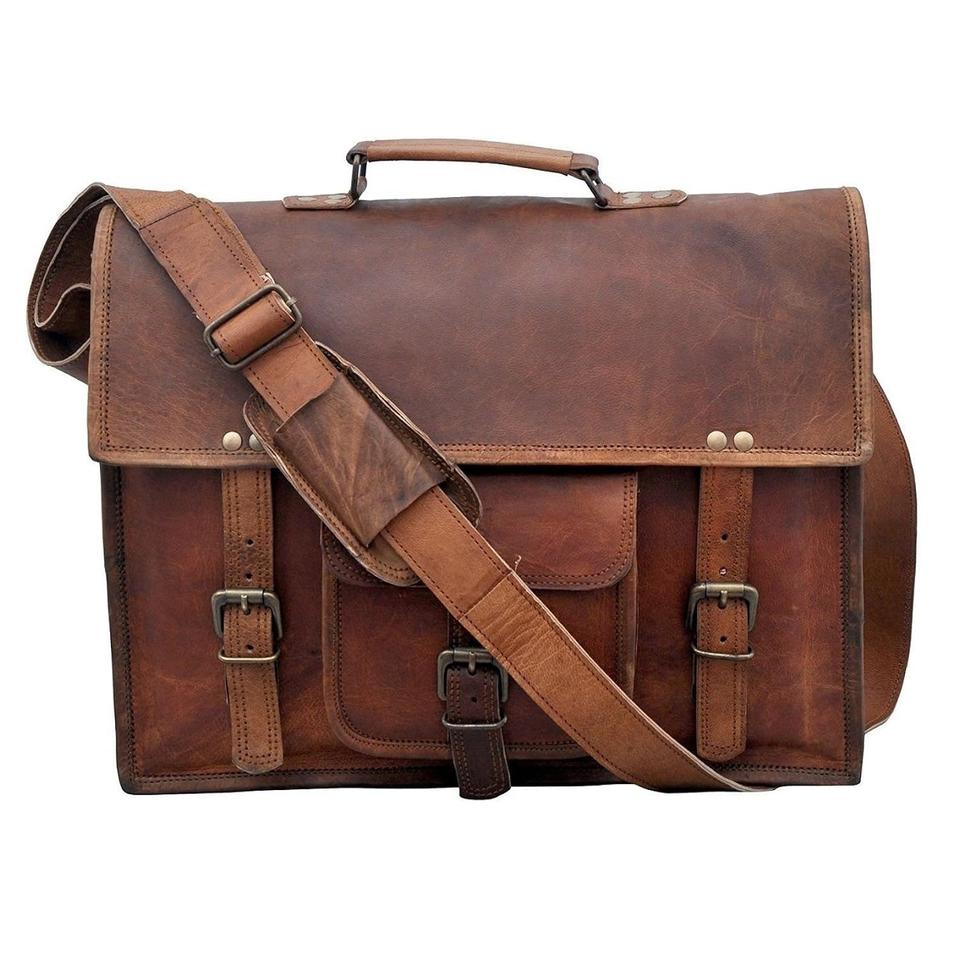 2025 Top Trendy Men's Camel Brown Latest Style Genuine Leather Laptop Messenger Bag with Flap Closure Unisex Messenger Bags