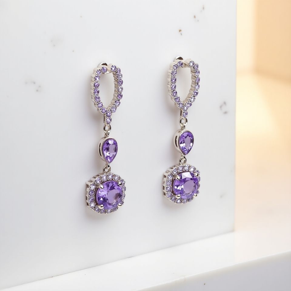 2025 Trend Elegant Marquise Halo Stud Earrings 14K Solid Gold with Lavender Sapphire Fine Jewelry Drop Design for Women