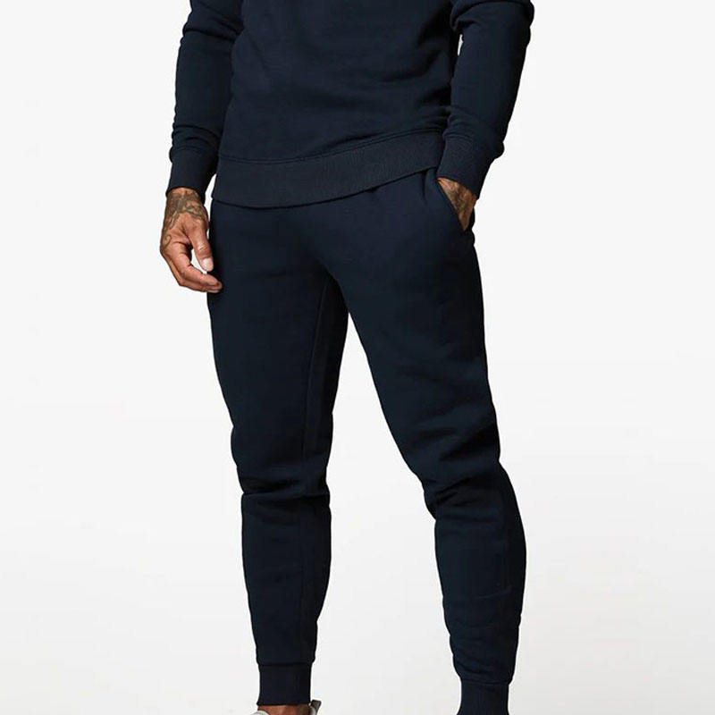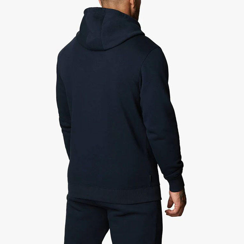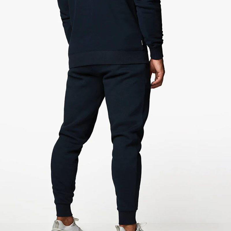 2025 Trend Men's Custom Navy Cotton Fleece Tracksuit Set Drawstring Hoodies & Jogger Pants Gym Wear Custom OEM Services