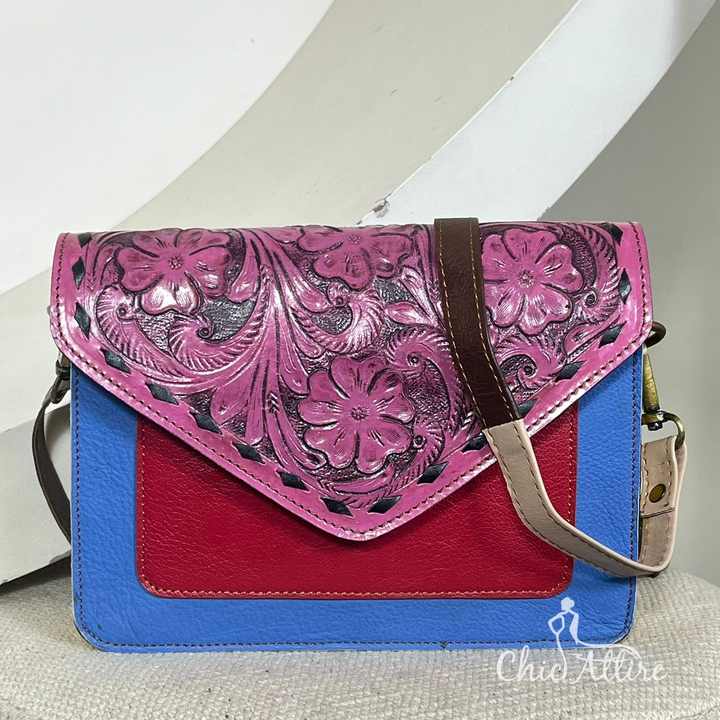 Hand Tooled Genuine Leather Colorful Crossbody Bag