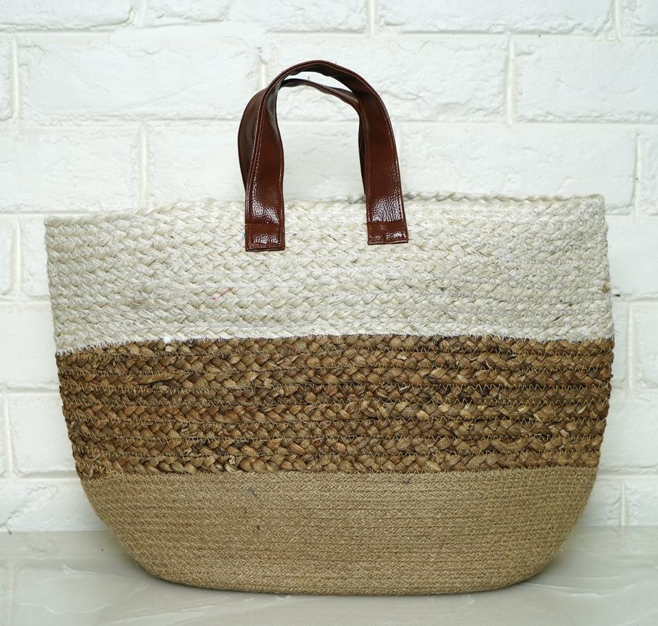 2025 Trending Cotton Jute Tote Bag for Women Handcrafted New Design Beach Shopping Bag with Leather Handle Ladies' Messenger Bag