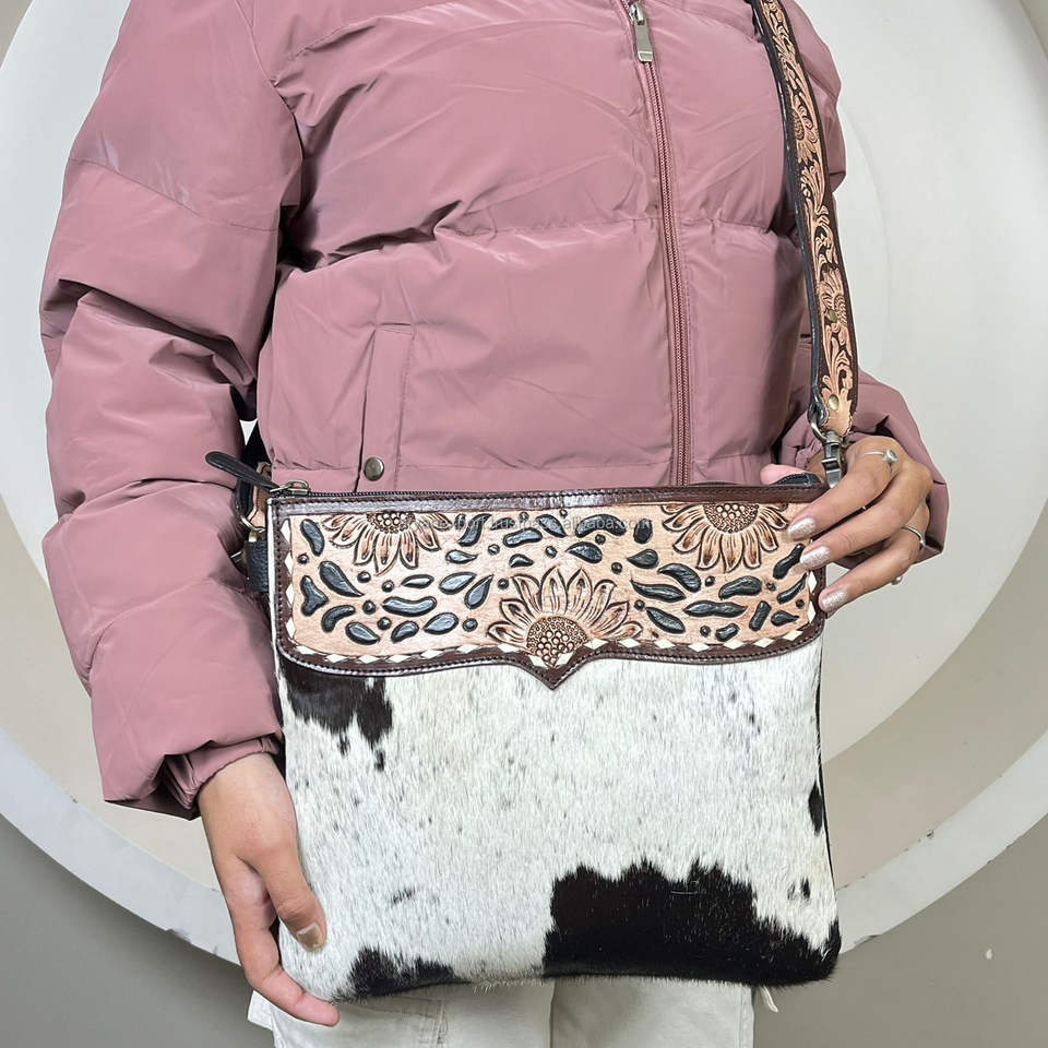 Product Name:Hand Tooled Cowhide Leather Crossbody Bag