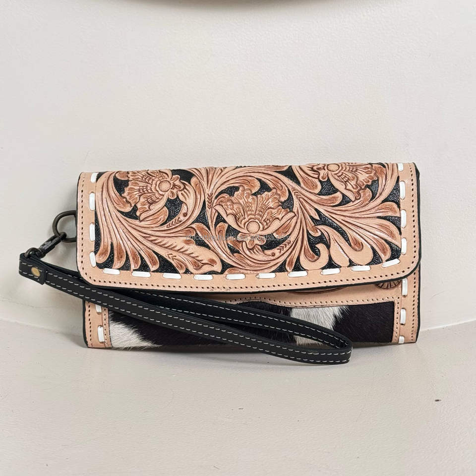 Product name:Western Hand Tooled Leather Wristlet Wallet