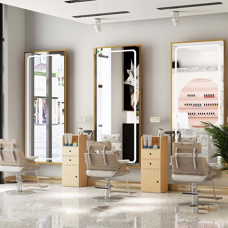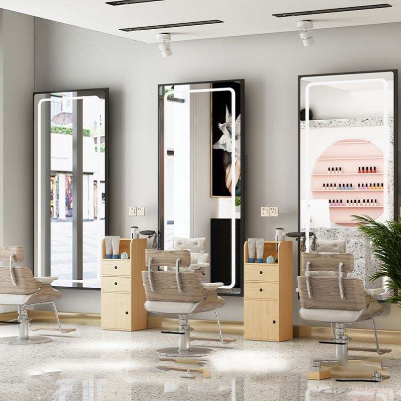 2025 Trending High Quality Gold Black LED Illuminated Rectangle Salon Beauty Mirror Modern Large Upright Floor Haircut for Hotel