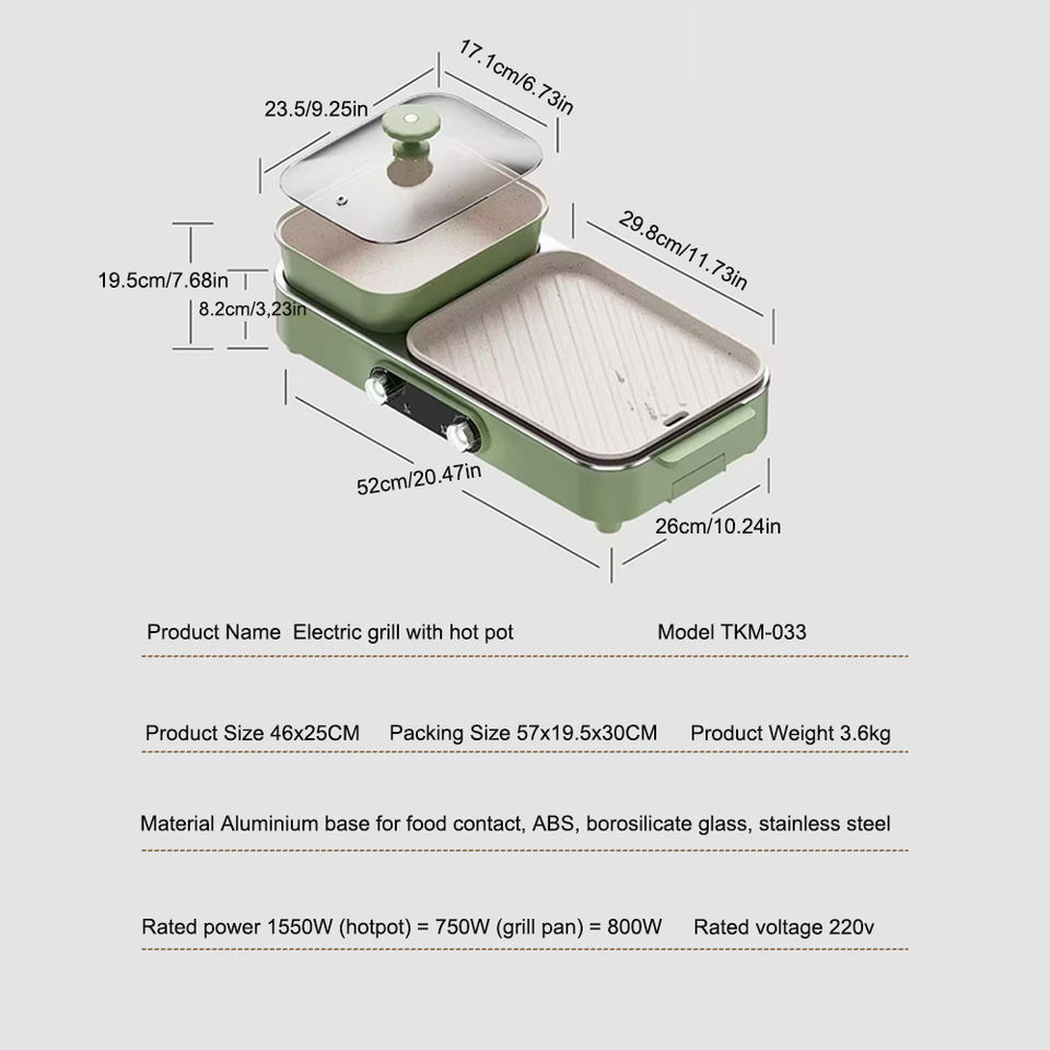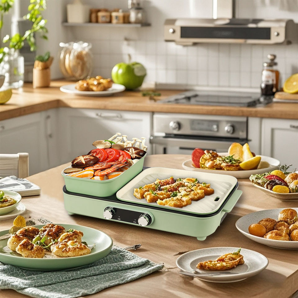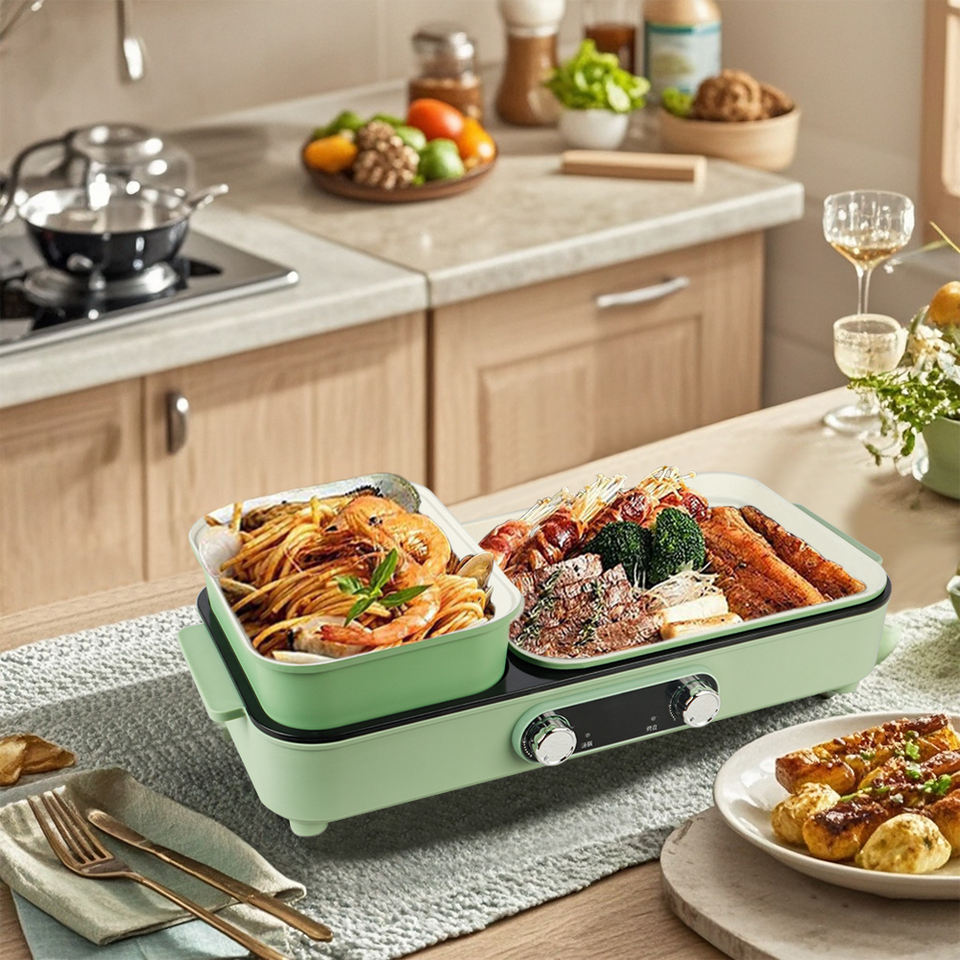 Dismountable Oil Collector, Non-Stick Cooking Surface, Temperature Control, Smokelessfunction