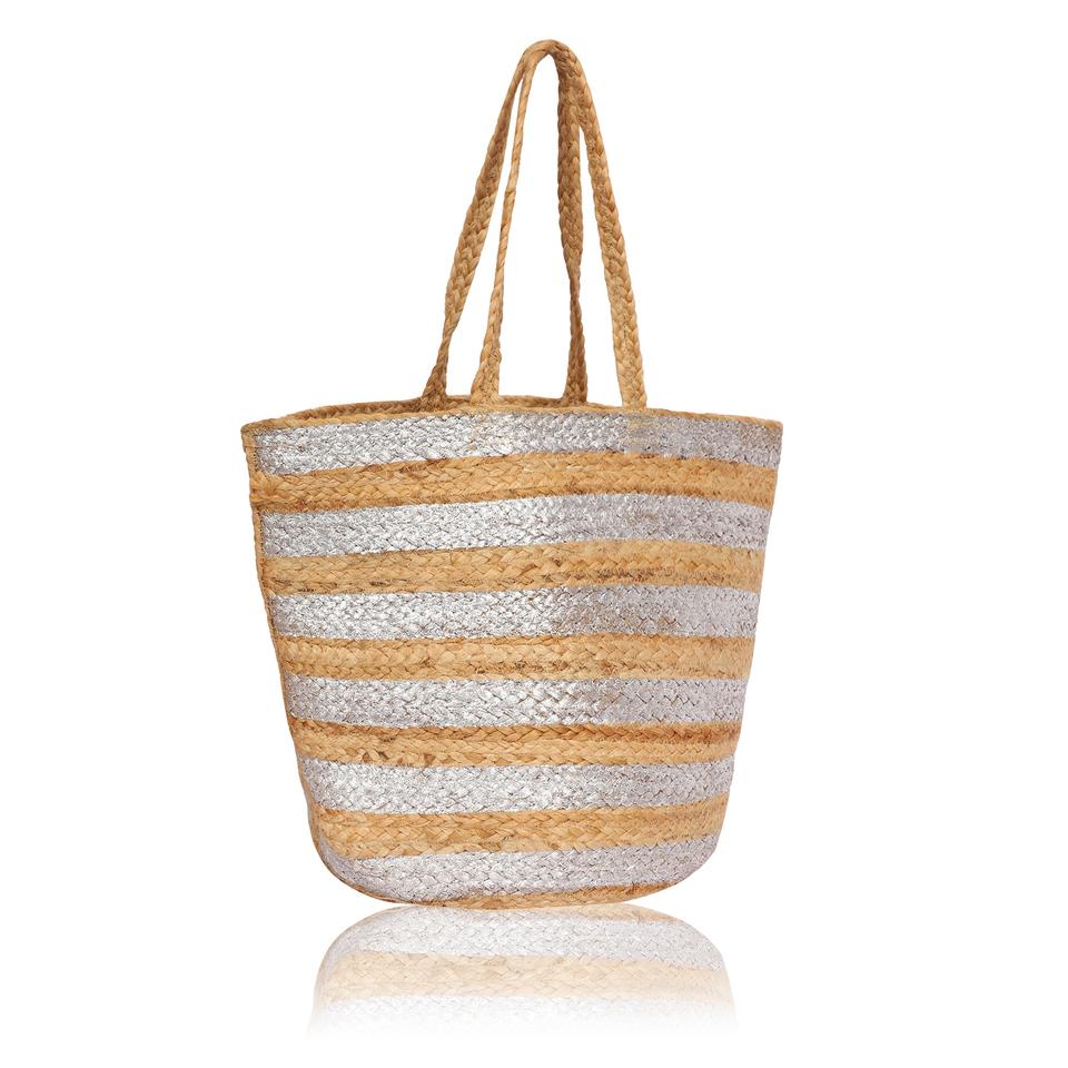 2025 Trending Jute Shopping Bag Tote Bag Reusable Silver Printed Jute Bag Handbag for Women and Girls Form Indian Supplier