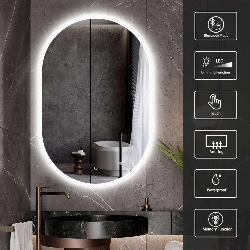 2025 Trending Modern Oval White Illuminated LED Bath Mirror Touch Sensor Bathroom Vanity Mirror for Living Room Furniture
