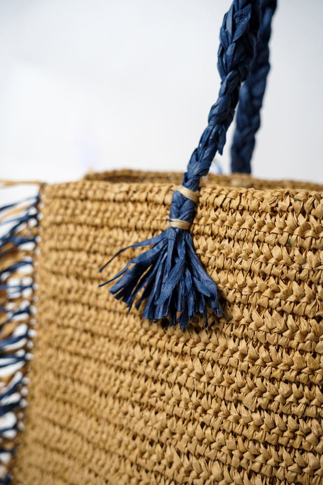 2025 Trending Natural Raffia Handwoven Shoulder Bag Soft Fabric Lining with Braided Handles Fashionable Fringe Beach Tote Bag