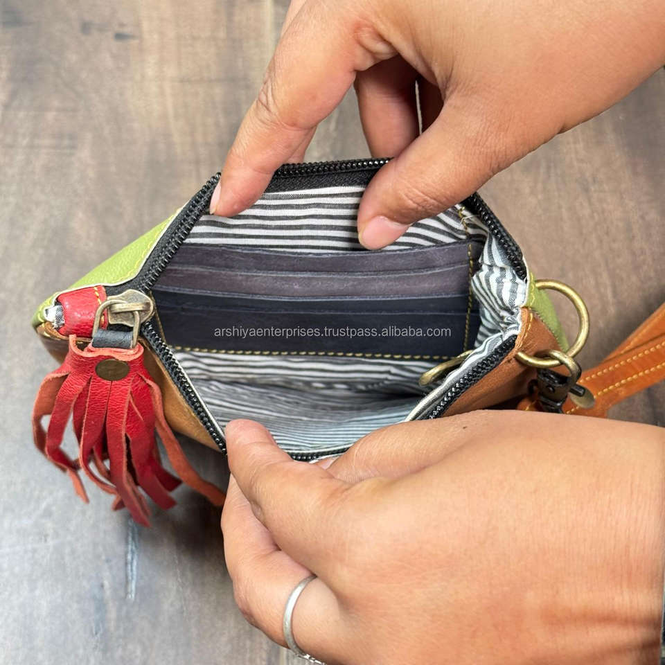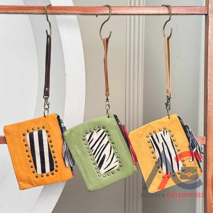 Product name:Multi Colored Recycled Leather Wristlet Clutch