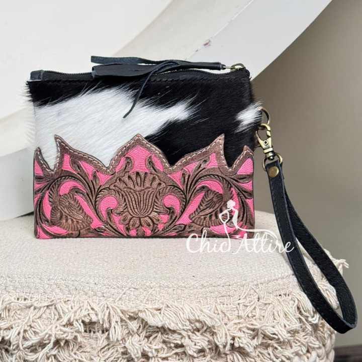 Product name:Hand Tooled Leather Wristlet Tassel Pouch