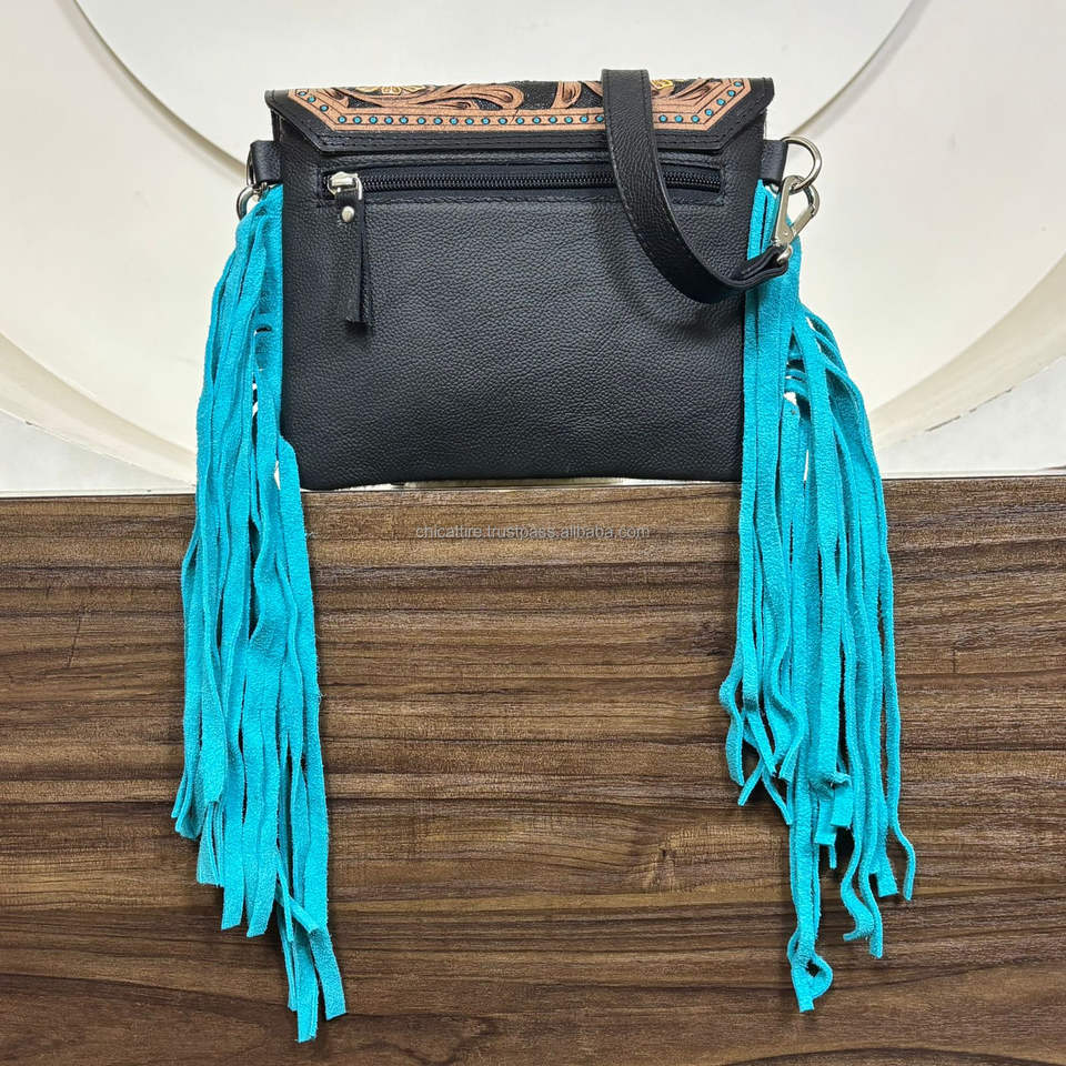 Product name:Hand Tooled Cowhide Leather Fringe Crossbody Bag