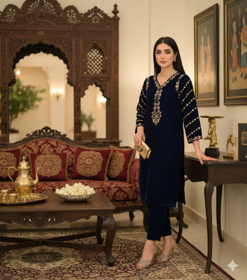 Include:Kurta (tunic) and Trousers (or Shalwar/Pants)