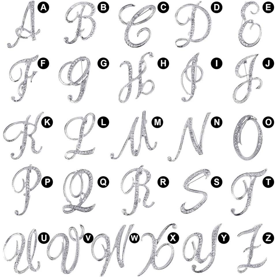 2025 Trendy 26 Letters Brooches Silver Plated Metal Lapel Pins Clear Crystal Mainly Zinc Alloy Copper Zircon Pearl Diamond