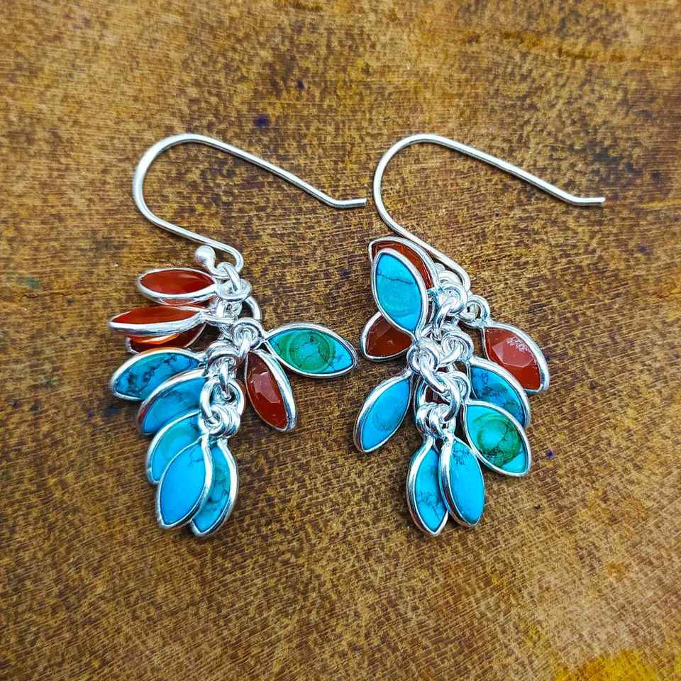 2025 Trendy Boho Dangle Earrings Natural Turquoise Carnelian Gemstone Sterling Silver Grape Earring Featuring Pearl Direct