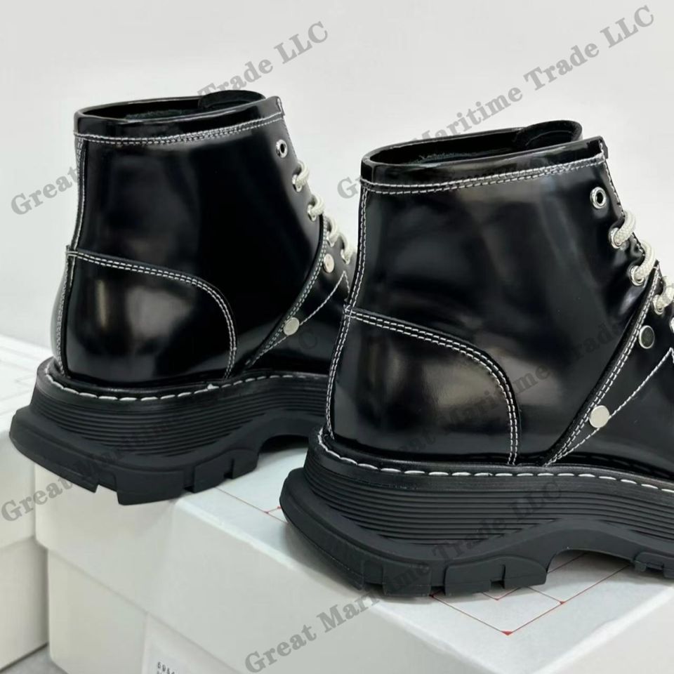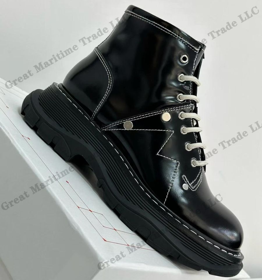 2025 Trendy Brand Customized Design Black Stripes Rivet Short Boots for Ladies Classic Lace up High top Chunky Shoes