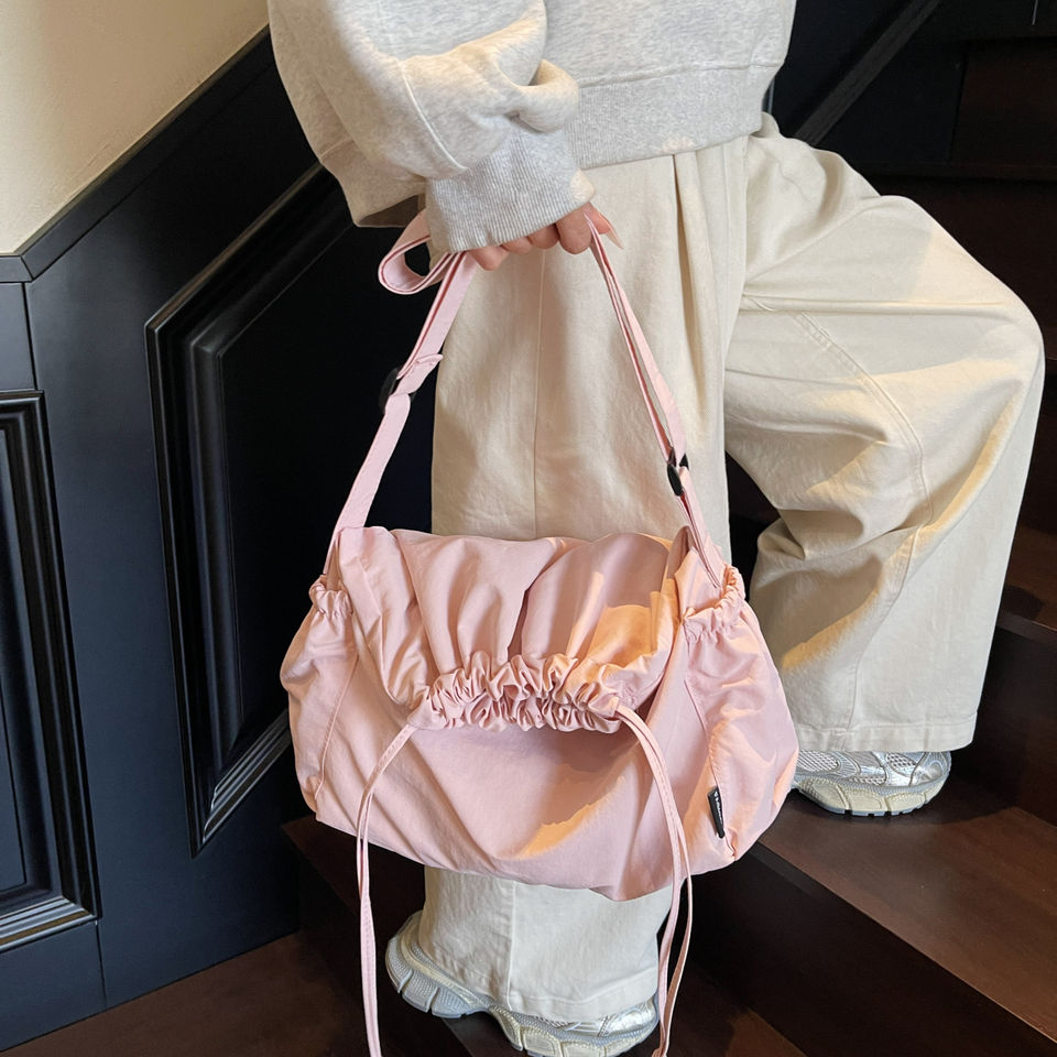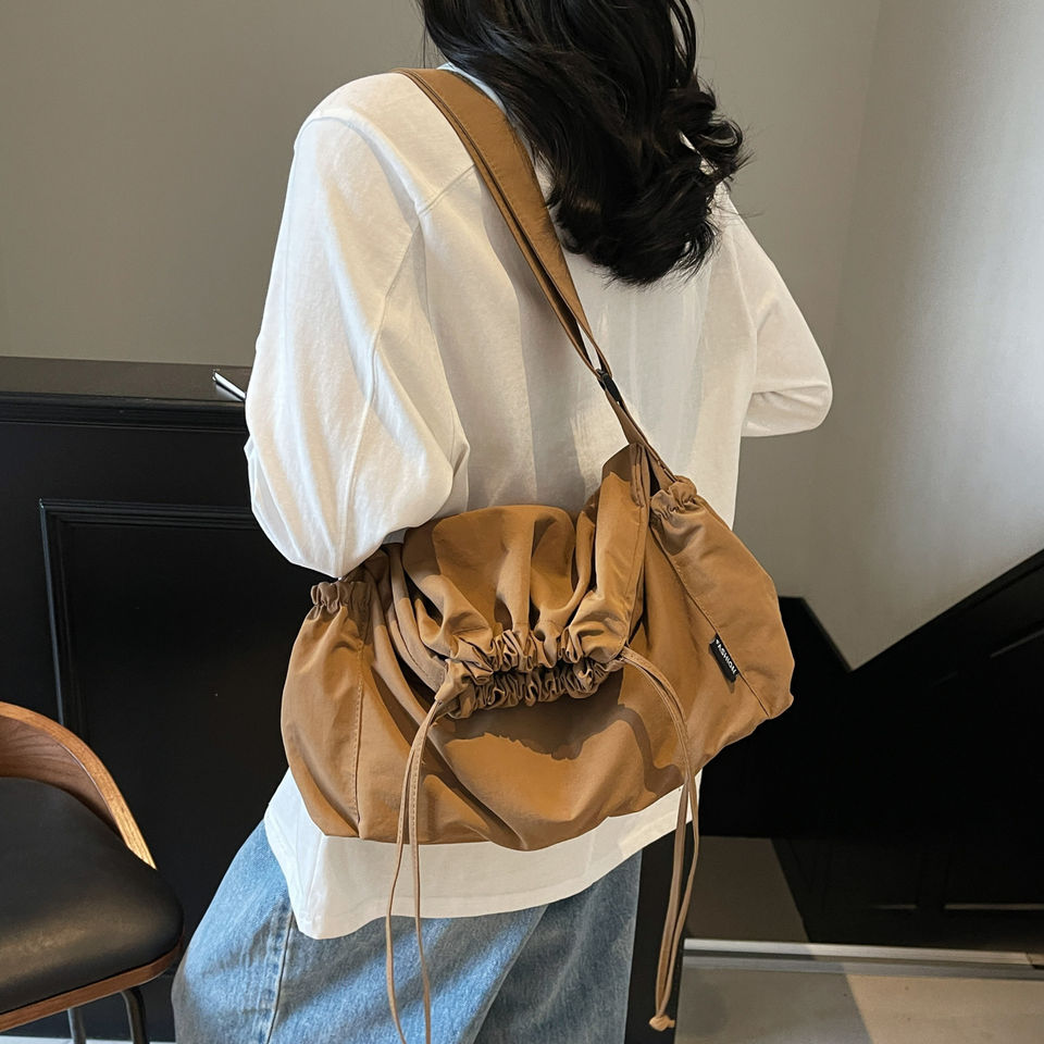 Product name:Trendy 2025 Crinkled Fabric Bucket Bag with Drawstring Closure