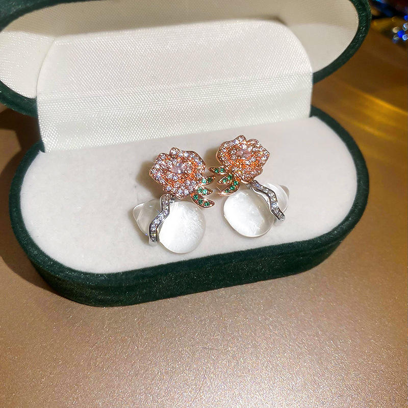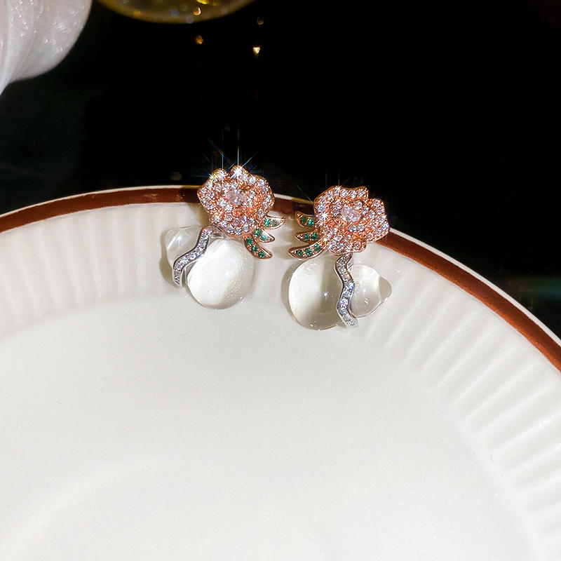 2025 Trendy Design Transparent Clear Bronze Zircon Glass Gourd Flower Shaped Necklace And Earrings Set Jewelry for Women