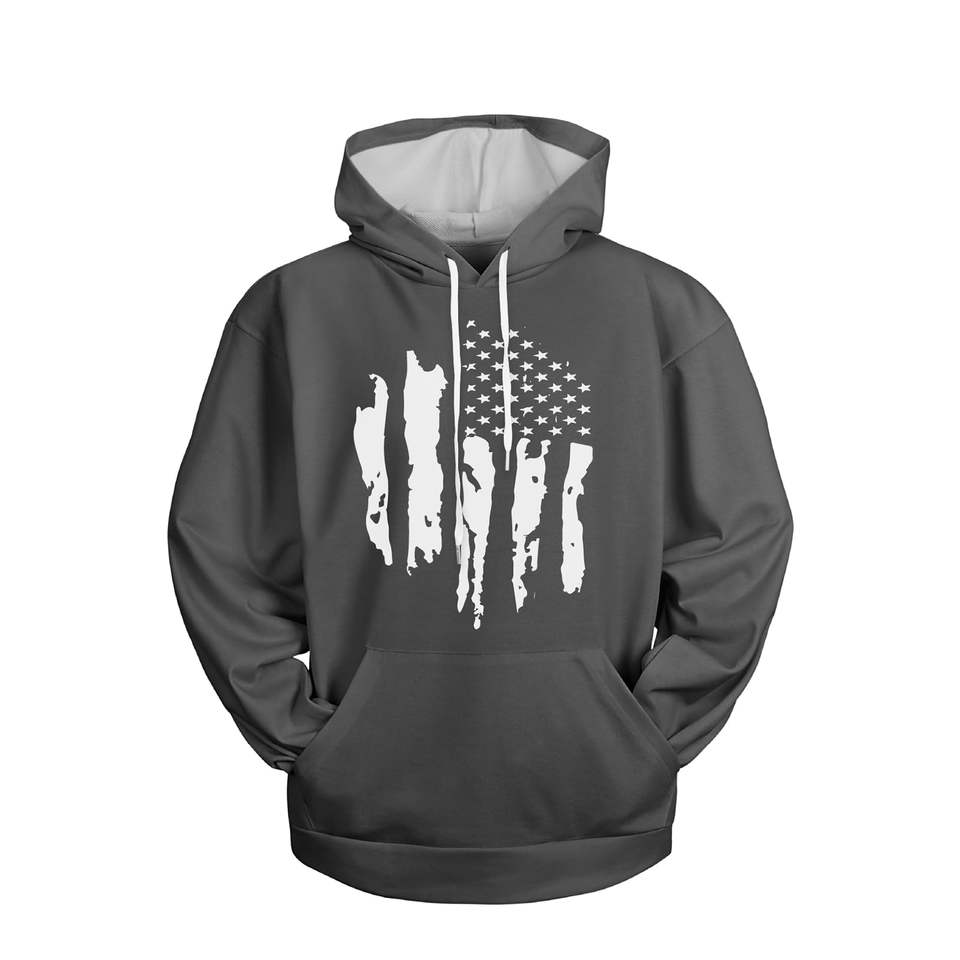 2025 Trendy Patriotic Sweatshirt Men's Distressed American Flag Hoodie Street Fashion