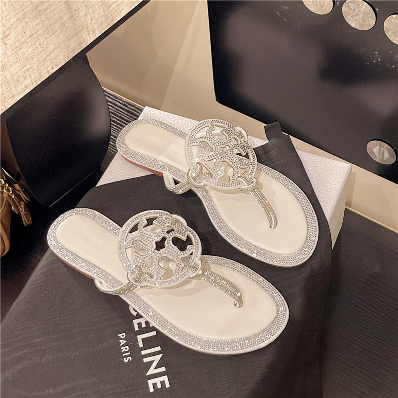 2025 Trendy Toybruch Style Flip Flops Sandals Genuine Leather Lined Women's Beach Shoes Outdoor Fashion