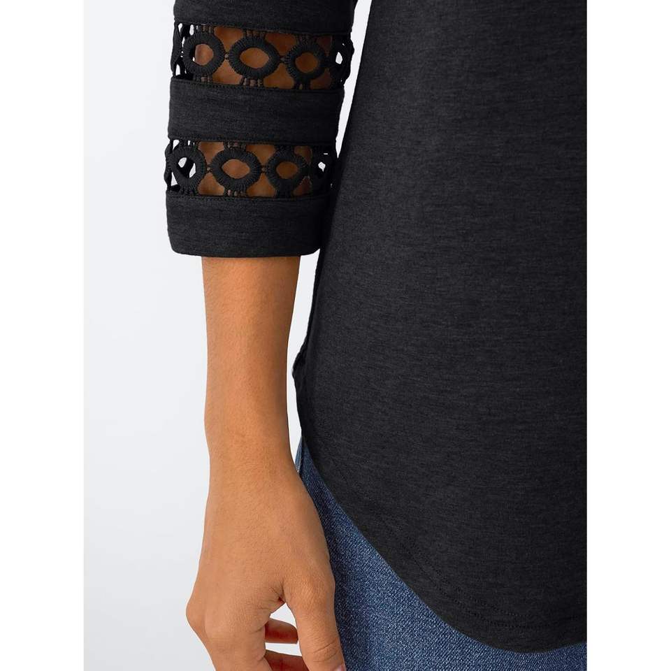 2025 Trendy Womens Tops Queen 3/4 Length Sleeve V Neck Lace Tunic Dressy Casual Business Outfits Ladies Fashion Sweaters
