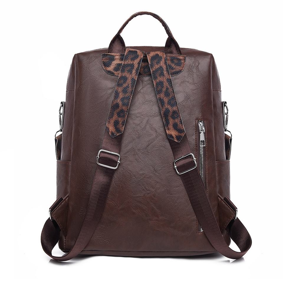 2025 Unisex Anti-Theft PU Backpack Large Capacity Waterproof Leopard Print Casual Fashion Shoulder Bag Tote for Men and Women