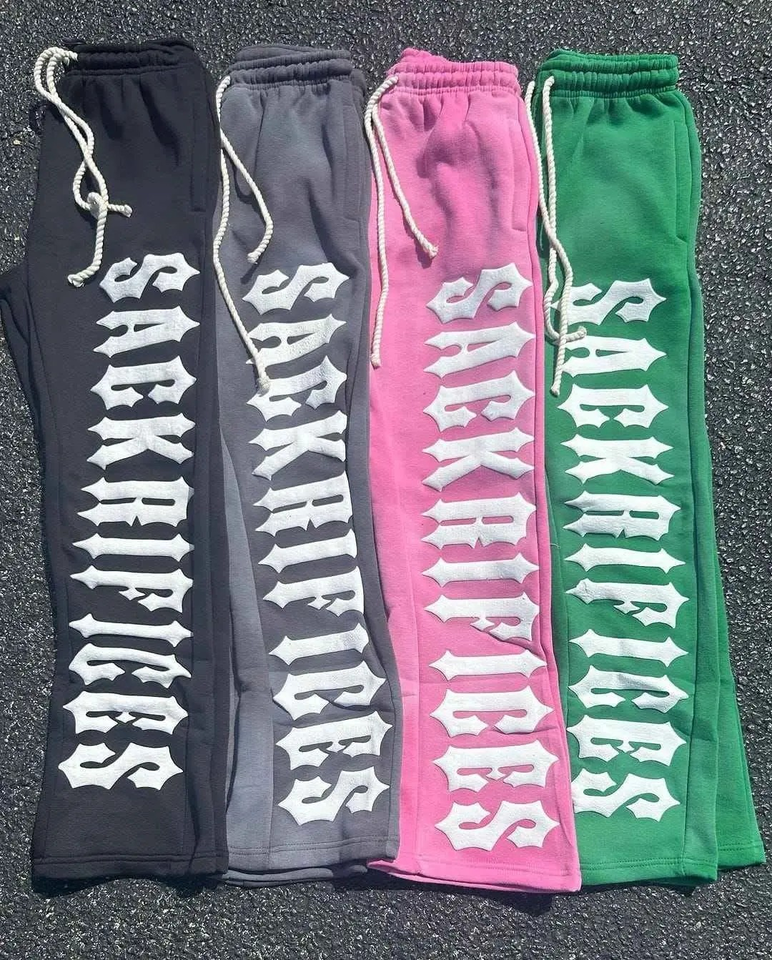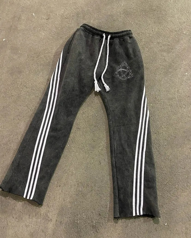 2025 Unisex Mid Waist Straight Women Flared Breathable Knitted Polyester/Cotton Sweatpants Loose Trousers Wide Leg Stacked Track