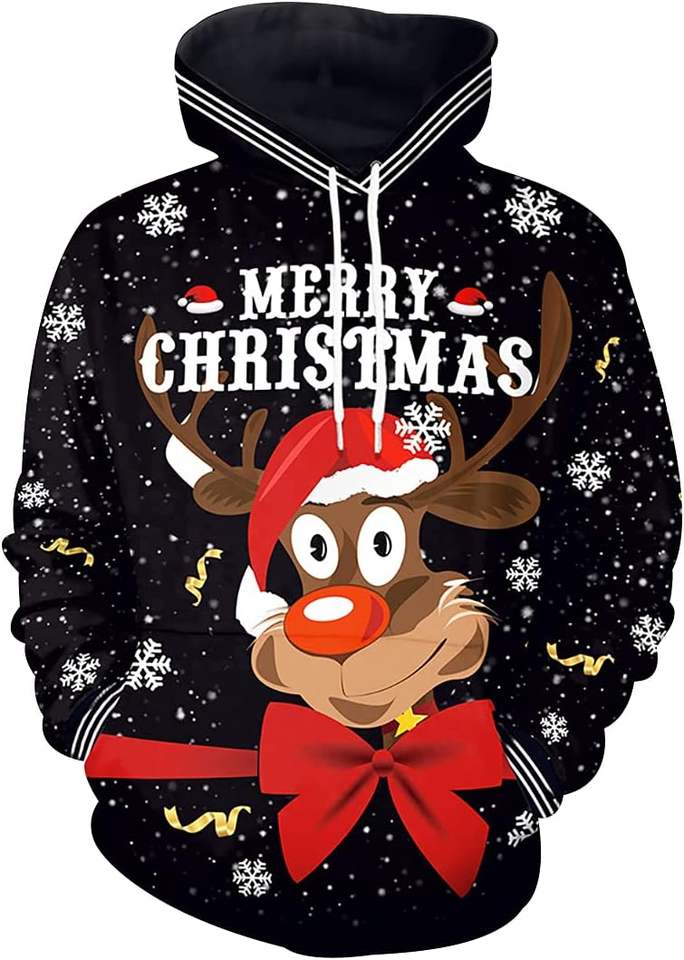 2025 Unisex Merry Christmas Printed 100% Cotton Fleece Hoodie OEM Customizable Loose Winter Christmas Solid Hoodie Hot Sale