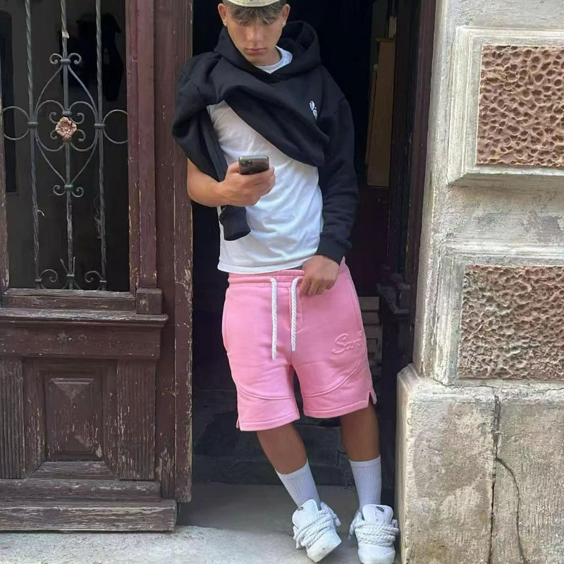 2025 Unisex Y2K Letter Embossed Relief Sweatpants New Solid Pink Baggy Pants Retro Casual Hip Hop Canvas Breathable Front Shorts