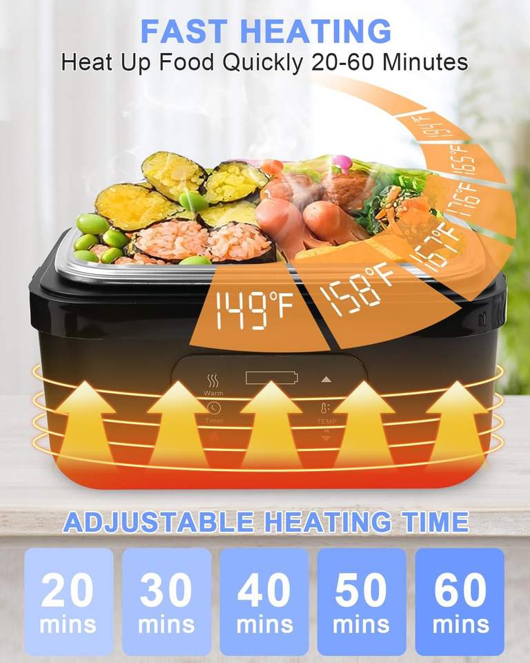 2025 Upgraded Portable Electric Lunch Box 16000mAh Rechargeable Water-free Camping Heat Preservation Electric Lunch Box