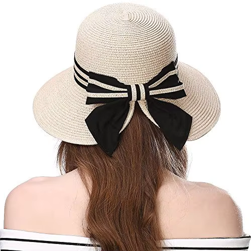 2025 Vietnam Trendy Floppy Straw Hat Women Feminine Elegant Bow Design Plain Pattern Four Seasons Travel Natural Daily Outdoor