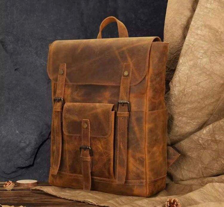 2025 Vintage Crazy Horse Leather Men Pure Cowhide Laptop Back Pack Bag