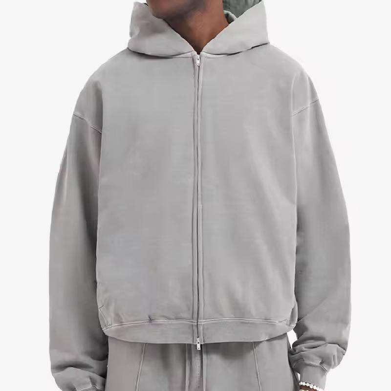 2025 Vintage Heavyweight 100% Cotton Full Zip Hoodies Streetwear Cropped Puff Digital Printing Winter Style Hooded Plain Dyed