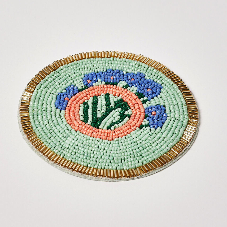 2025 Vintage-Inspired Glass Beads Handmade Coaster Luxury Dining Artistic Drink Mat Custom Alphabet Design