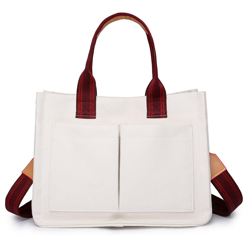 2025 Vintage Tote Bag Women Large Capacity Multi-Pocket Crossbody Zip Closure Fashionable Casual Design Canvas Lining Dual