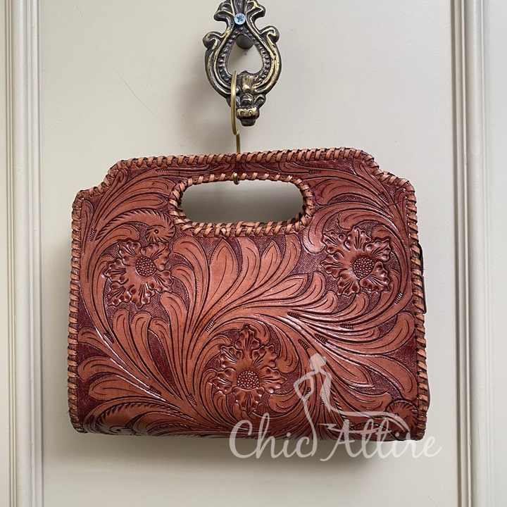 2025 Western Women Genuine Leather Designer Handbag Purse Top Handle Satchel Hand Tooled Floral Carving Stylish Bag Gift for Her