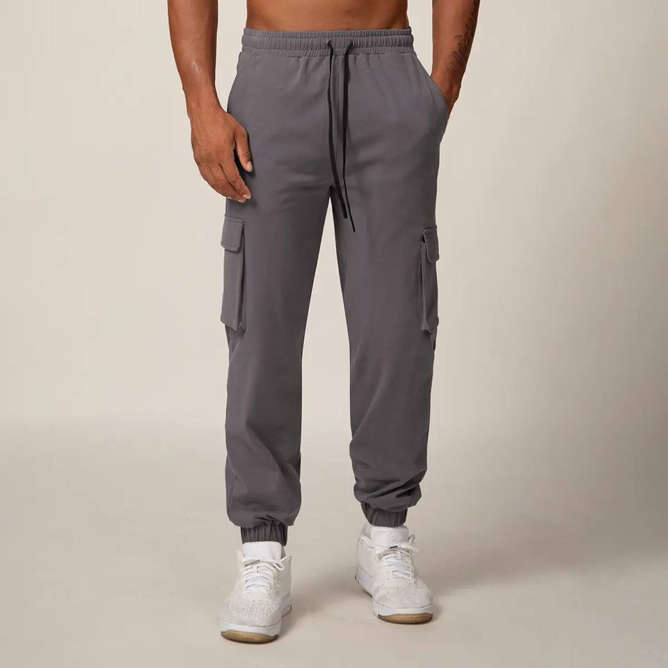 2025 Wholesale Casual Cargo Pants High Drawstring Multiple Pockets Outdoor Sweatpants Comfortable Stretch Training Wear for Men